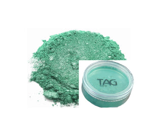 TAG- Cosmetic Mica Powder - Green can be used to accentuate face and body painting, or substitute glitter in temporary tattoos. Mica is composed of natural mineral muscovite and is derived in the form of large pearlescent sheets or flakes, offering a shimmering, iridescent look. This 15ml sifter contains ultra-fine mica particles.